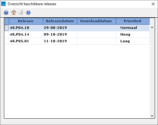 In geval het venster niet wordt geopend zie Overzicht beschikbare releases niet getoond.