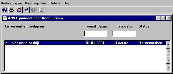 Het bedrijf waarvoor u de journaalkoppeling kunt verwerken. Als u werkt met de concernmodule en de optie Kantoren apart staat op Ja, dan kunnen in dit venster meerdere bedrijven verschijnen. |