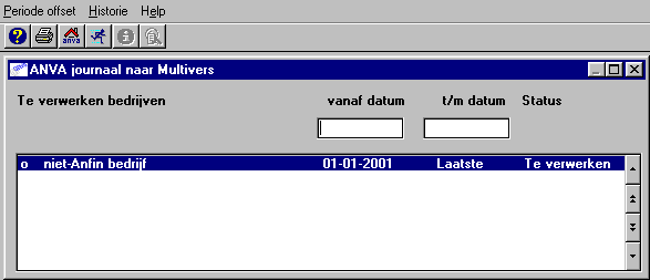 Het bedrijf waarvoor je de journaalkoppeling kunt verwerken. Als je werkt met de concernmodule en de optie Kantoren apart staat op Ja, dan kunnen in dit venster meerdere bedrijven verschijnen. |