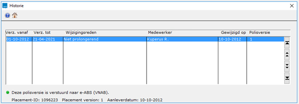 e-ABS gaat anders om met polisversies dan ANVA. De placement-ID in e-ABS is de equivalent van het polisversienummer in ANVA, maar het is niet zo dat er voor elk polisversienummer in ANVA een unieke placement-ID is. ANVA maakt voor elke doorgevoerde mutatie, ongeacht de reden, een nieuw versienummer voor de polis aan. e-ABS doet dat niet. Voor wijzigingen die niet op de polisgegevens zelf betrekking hebben, maar uitsluitend op formulieren of documenten die naar de verzekeraars gaan, wordt geen nieuwe placement-ID aangemaakt. Voor wijzigingen op de polisgegevens, de verzekerde som of de premie wordt wel een nieuwe placement-ID aangemaakt.