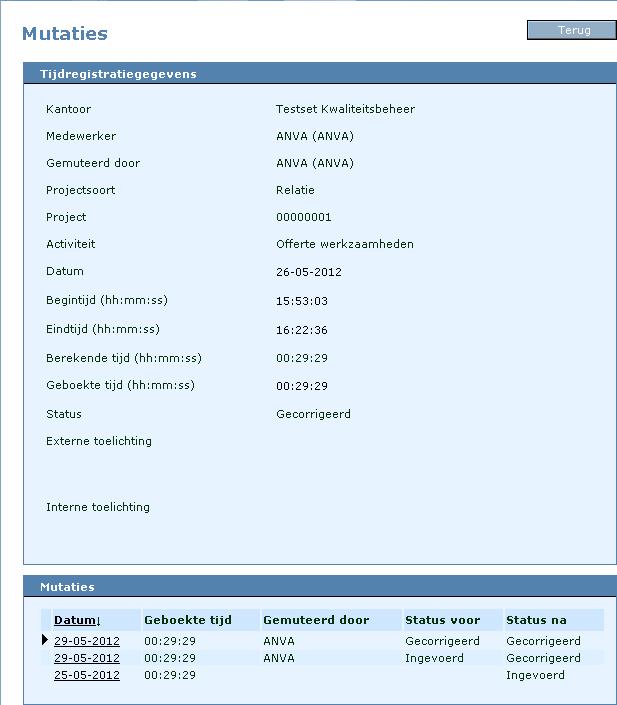 - Er worden alleen tijdschrijfregels getoond die zijn geboekt op projecten die horen bij de kantoren waarvoor de ingelogde gebruiker is geautoriseerd.