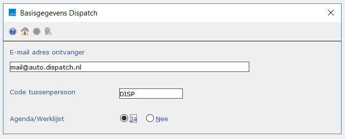 Vul hier het e-mailadres van de dispatch in: mail@auto.dispatch.nl. |