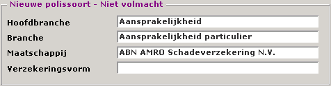 Kies, als u voor de combinatie hoofdbranche/branche/maatschappij meerdere schermen wilt maken, met Info Let op Verzekeringsvormen die met # beginnen zijn door ANVA aangemaakt en kunt u alleen gebruiken om uniforme polisschermen aan te maken. Zie: Uniforme polisschermen. |