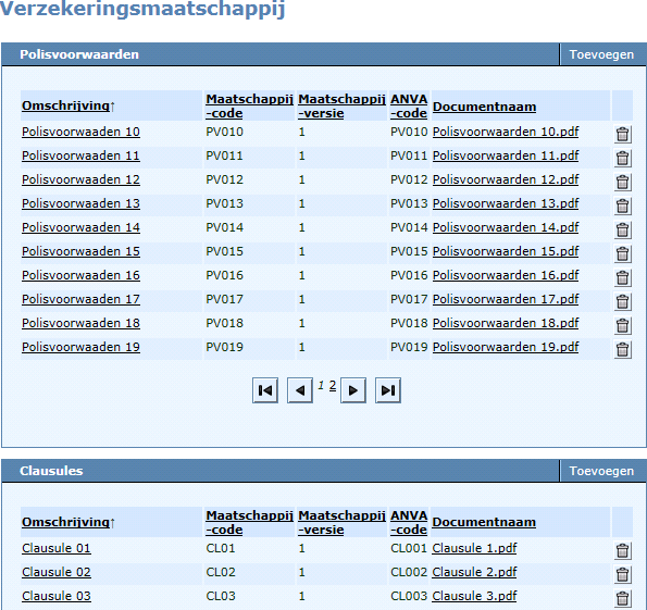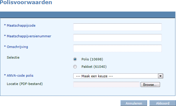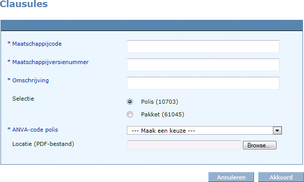 Via pad BMM kunt u de voorwaarden en clausules van de maatschappij koppelen aan de ANVA-voorwaarden en -clausules.