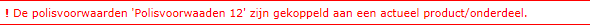 Let op U kunt alleen een polisvoorwaarde of clausule verwijderen als deze niet gekoppeld is aan een actief product en/of productonderdeel. Als deze wel gekoppeld is, volgt een waarschuwing:![]()