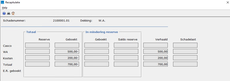 Een boeking op DSA Aansprakelijk gaat wél ten laste van de eigen maatschappij, dus Netto maatschappij wordt daar wel gevuld. Bij een verhaaldboeking (PDV = Registratie DSA boeking) is de Netto maatschappij altijd nul, net als bij de bestaande boeking: Registratie = P.