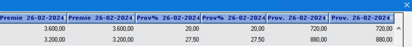 Hiervoor is in de polis bij menu Verdeling de switch Premie 0/00 alle dekkingen aanwezig.