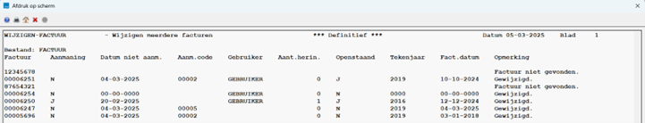 Via pad IIRFM kun je aan de hand van een input-bestand (csv) meerdere facturen wijzigen. Je kan de aanmaningsgegevens van de factuur wijzigen en eventueel de factuur in historie zetten.