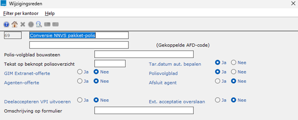 Om na de conversie de geconverteerde polissen te kunnen herkennen is het handig om een aparte wijzigingsreden aan te maken. In het invoerscherm van het conversieprogramma kun je aangeven dat deze wijzigingsredenen moet worden gebruikt.
