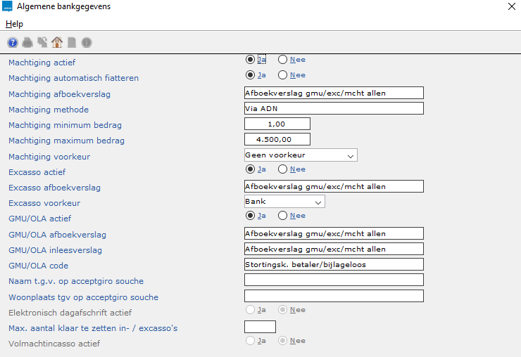 Voorbeeldscherm Algemene bankgegevens