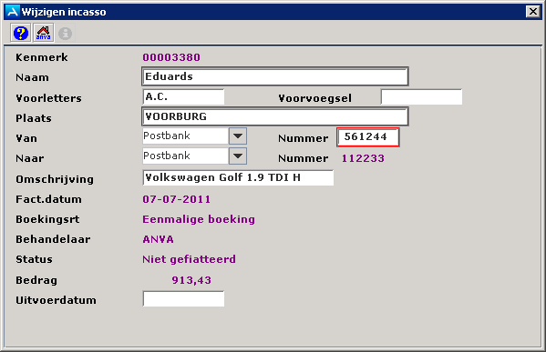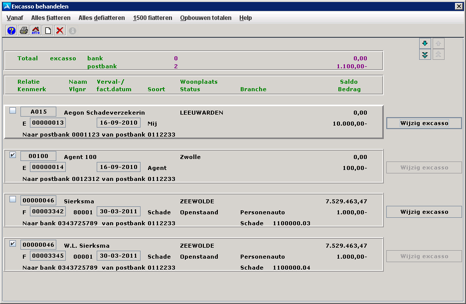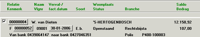 Deze vooruitbetaling is vaak handmatig vastgelegd, maar deze kan ook gegenereerd zijn bij het verwerken van het elektronisch dagafschrift. In de bijbehorende factuur is het volgnummer van de polis gevuld. Dit laatste is altijd het geval bij restitutieboekingen, want die zijn altijd per polis.