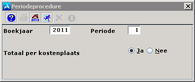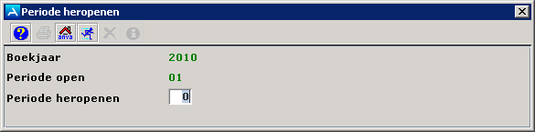 Hier wordt automatisch de huidige periode ingevuld. U kunt dit aanpassen. Als u op [Enter] drukt verschijnt het volgende veld.