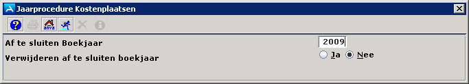 Hier wordt automatisch het huidige standaard boekjaar ingevuld. U kunt dit aanpassen. Als u op [Enter] drukt verschijnt het volgende veld.