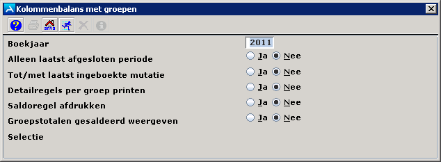 Kies Ja als u alleen het totaal per kostenplaats op het overzicht wilt zien of Nee als u de boekingen gedetailleerd op het overzicht wilt hebben.