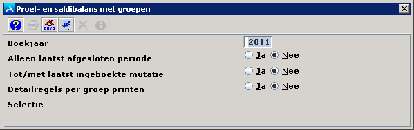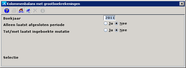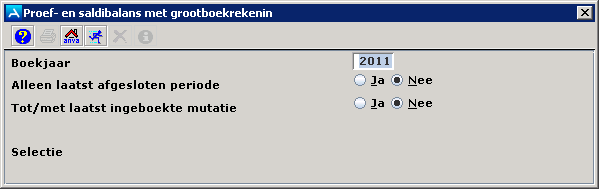 In het veld Boekjaar staat het standaard boekjaar zoals ingegeven in pad FHAR. Het standaard boekjaar is normaliter het huidige boekjaar. U kunt een ander boekjaar invoeren. Kies of de laatst afgesloten periode op het overzicht getoond wordt, of dat alles tot en met de laatste mutatie getoond wordt, of dat alleen de mutaties die door de dagprocedure verwerkt zijn op het overzicht komen.