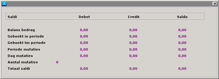 Vul - als het dagboek waar u op boekt, gekoppeld is aan een grootboek - hier het nieuwe saldo in. Als u op [Enter] drukt verschijnt het volgende veld.