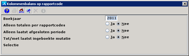 Het venster Kolommenbalans op rapportcode verschijnt.