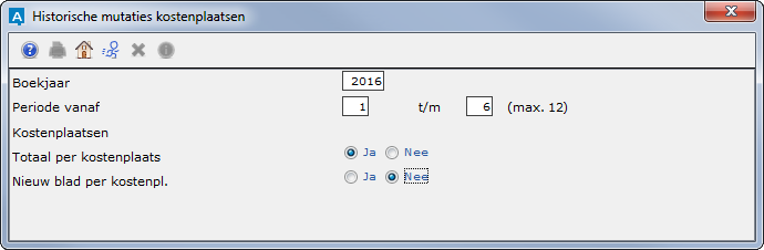 Het venster Historische mutaties kostenplaatsen verschijnt.