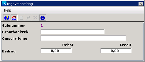 Klik op Nieuw en vul in het venster Ingave boeking de volgende gegevens in.