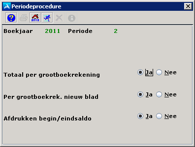 Notitie Als de vaste journaalposten voor een bepaalde maand niet zijn verwerkt in pad FHBV, dan kan de periodeprocedure niet gedraaid worden.