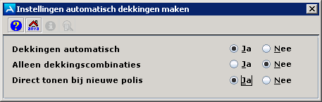 De instellingen voor het automatisch aanmaken van dekkingen worden eenmalig ingesteld via pad IICAPI. Via het variabele polisscherm kunt u per polis afwijken van deze basisinstellingen.