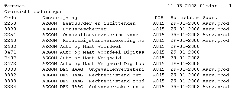Bij de maatschappijgegevens van K333 is een tarief gedefinieerd dat bij een WA-dekking vanaf 01 01 2006 actief is. In dat tarief staat K011 als POR- maatschappij vermeld. In de coderingen van label 11791 staat product-ID 62 bij maatschappij K011 vermeld.