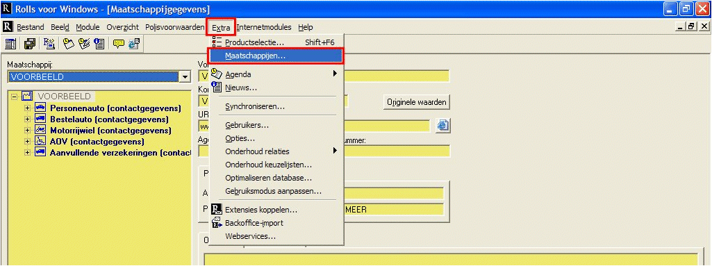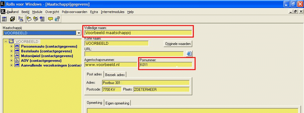 Let op het kan incidenteel voorkomen dat het POR-maatschappijnummer in Rolls afwijkt van het POR-maatschappijnummer in ANVA. Het is van belang dat in ANVA dezelfde code wordt gebruikt als in Rolls. Controleer in Rolls via menu Extra - Maatschappijen - veld pornummer het POR-maatschappijnummer. Als dit afwijkt van het ANVA-nummer, dan kunt u dit op twee manieren oplossen: