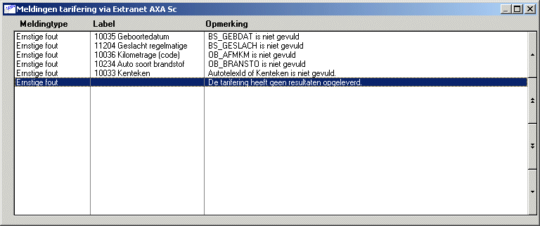 Het is dus mogelijk om polissen die extern tariferen achteraf apart te prolongeren. Als er op het foutverslag van het extern tariferen meldingen staan zullen deze eerst moeten worden opgelost. Op het foutverslag kunnen waarschuwingen en ernstige fouten zijn vermeld: