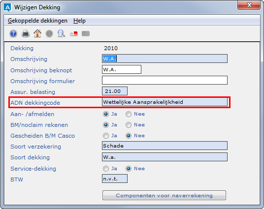 Let op Controleer of in de dekking de juiste ADN-dekkingcode is opgenomen. In pad BPBD kunt u dit eventueel aanpassen.