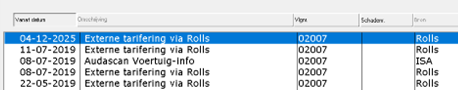 Voor het goed functioneren van de externe tarifering via Rolls is het nodig dat bij de desbetreffende branches het juiste type voertuig is gekozen. Opmerking: Rolls merkentabel is niet meer actief, maar deze optie moet nog wel gevuld worden.