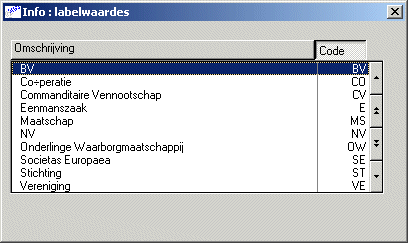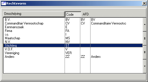 Het koppelen van AFD-labelcoderingen aan ANVA-labelcoderingen doet u in pad BLC bij label 01019 Rechtsvorm.