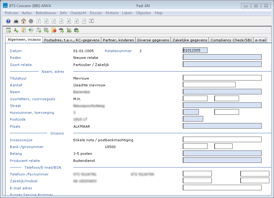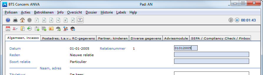 Er is géén dossier aanwezig op relatieniveau. ANVA maakt automatisch een dossier aan zodra er notities of correspondentie voor de relatie bestaan. |