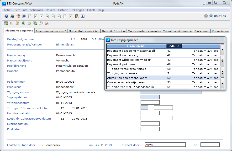 Er is géén dossier aanwezig op polisniveau. ANVA maakt automatisch een dossier aan zodra er notities of correspondentie voor de polis bestaan. |