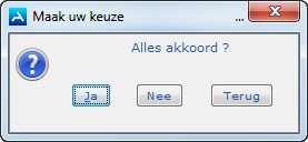 Bij het wijzigen van gegevens kan het voorkomen dat bepaalde controles worden uitgevoerd, waardoor ANVA ook andere gegevens wil aanpassen. Je hebt dan de keuze om deze gegevens al dan niet aan te passen. Op de melding die in deze situatie verschijnt kan je de volgende antwoorden geven:
