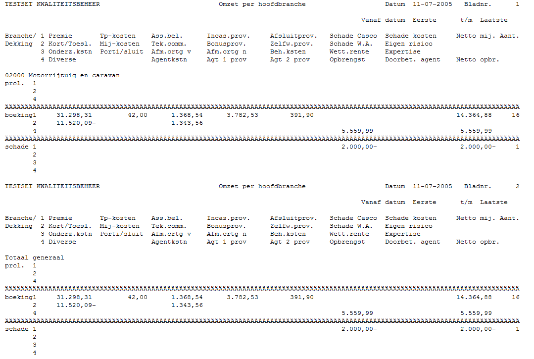 Schadepercentage = totaal schade : geboekte premie. Indien er geen premie is geboekt wordt “****” afgedrukt. |