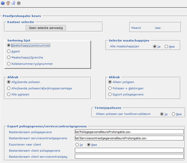 De polissen die in de opgegeven maand volgens ANVA moeten prolongeren worden nu geselecteerd.