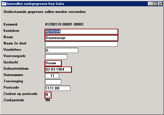 Om een Roy-Data bericht aan te maken moeten voor een natuurlijk persoon de labels 00044 Geslacht en 10035 Geboortedatum zijn gevuld. Op basis van label Geslacht wordt bepaald of de relatie een natuurlijk persoon of rechtspersoon is. Voor een rechtspersoon zijn deze gegevens (geslacht en geboortedatum) niet nodig.