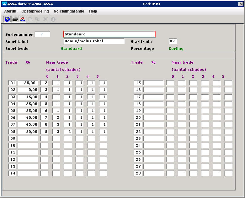 Hier geeft u de defaultreden op voor de agenda: 'Afwijkende schadevrije jaren'. |