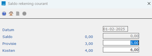 Invoeren van het juiste beginsaldo en provisie- en kostentotalen. Vul hier alleen het saldo voor een nieuwe agent in.