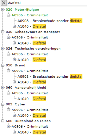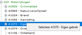 Ook kan label 91500 Schadeclassificatie in een selectie gebruikt worden.