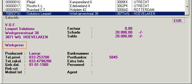 Onderin het scherm Zoeken relatie in het gedeelte Extra info staat, indien van toepassing, of de relatie een Werknemer of Werkgever is.